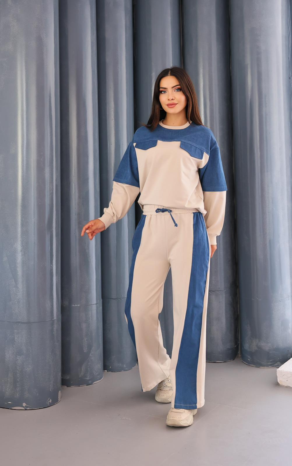 BİSİKLET YAKA KOT DETAYLI MODAL KREM TAKIM