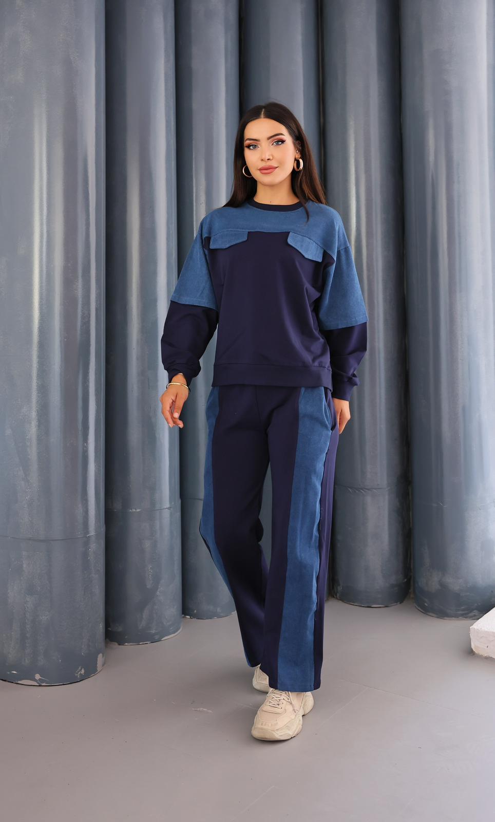 BİSİKLET YAKA KOT DETAYLI MODAL LACİVERT TAKIM