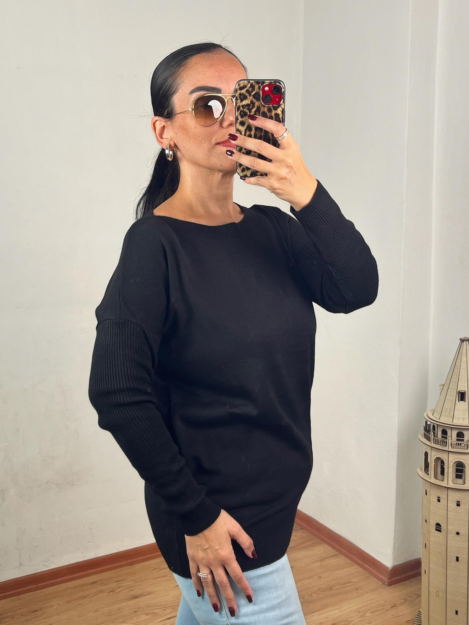 KAYIK YAKA CEPLİ SİYAH UZUN TRİKO