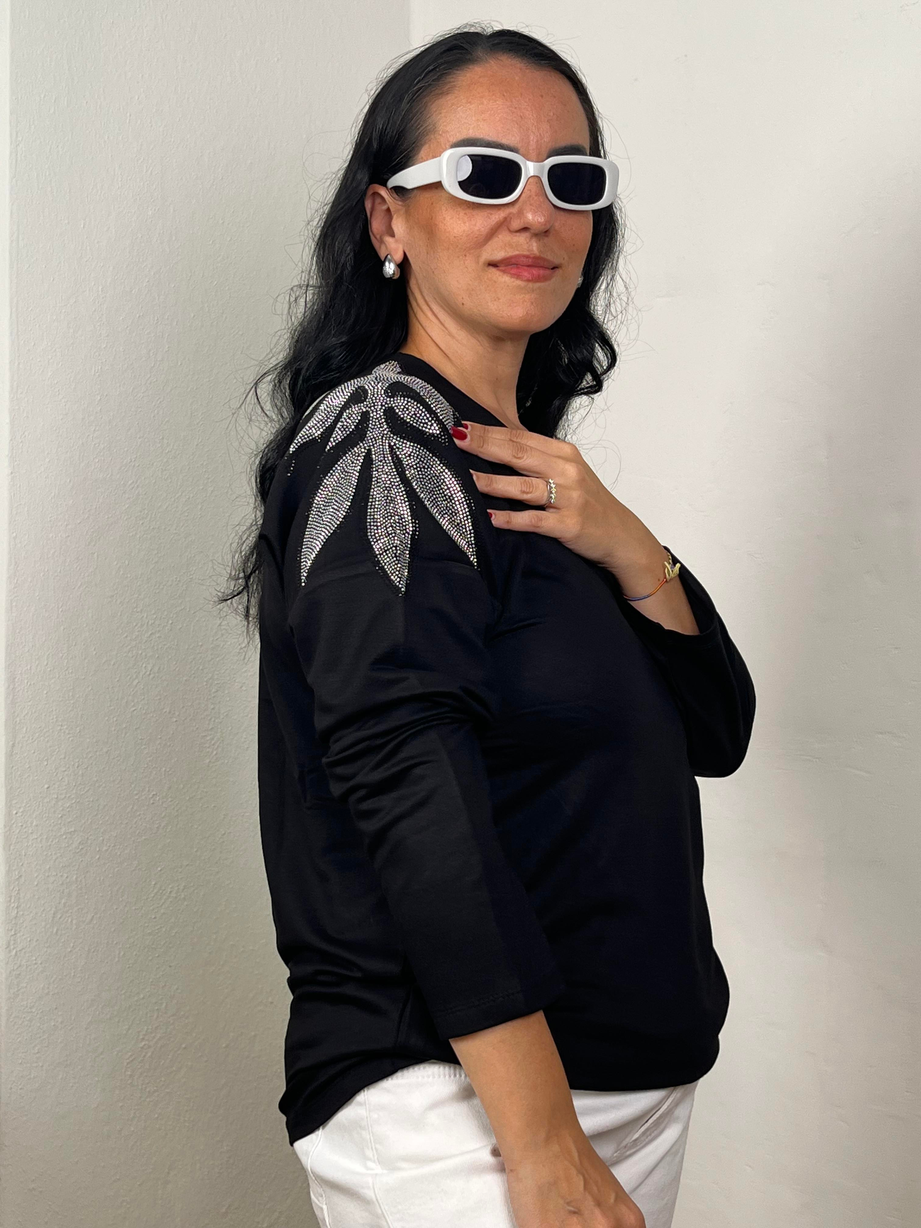 OMZU TAŞLI V YAKA SİYAH BLUZ